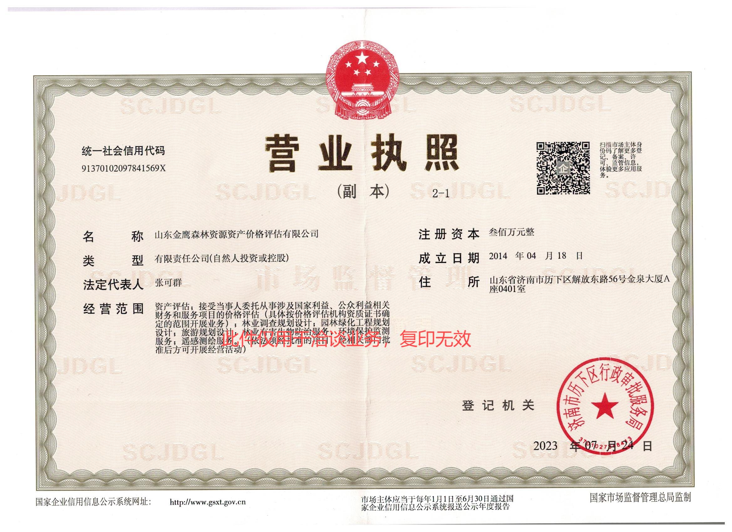 山東金鷹森林資源資產(chǎn)價格評估有限公司于2014年4月由山東省林業(yè)科技培訓中心立項組建成立,后注冊改為民營企業(yè),實行公司化經(jīng)營,注冊資金300萬元。本公司是經(jīng)原省林業(yè)廳審核,省物價局批準頒發(fā)的第一批省內(nèi)森林資源資產(chǎn)價格評估資格的專業(yè)機構(gòu)。